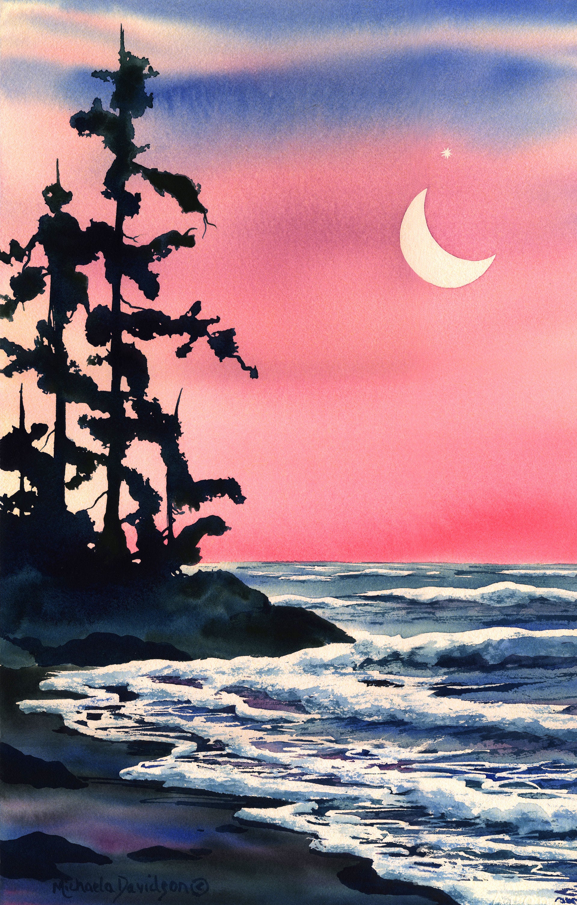The evening star makes an early appearance in its haste to join the crescent moon in the crimson sky